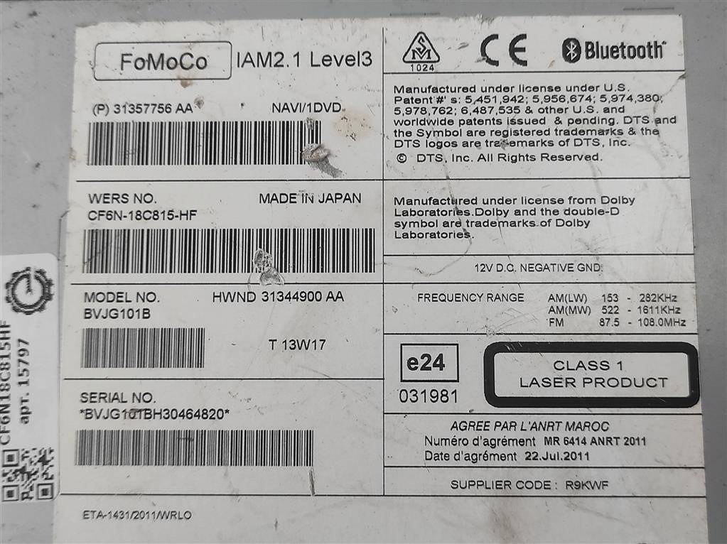 | Номер запчасти | CF6N18C815HE, BF6N18C815HH, BVJG101B, C2D30711, C2D30711E, C2D33752, C2D38708, C2D46634, C2D49694, C2Z31839, CF6N18C815HB, CF6N18C815HD, CF6N18C815HF, CF6N18C815HH, CF6N18C815HJ, CF6N18C815HK, HIA10398603, LR029253, LR039969, LR043523, LR045058, LR046855, LR052067, LR056218, LR057756, LR065357, LR071118, LR078722, LR079509, LR083311, CF6N18C815HF |