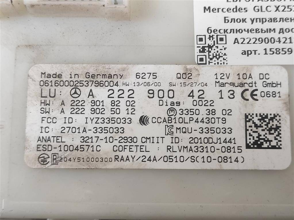 Блок управления бесключевым доступом Mercedes-Benz GLC-Класс X253/C253 2016