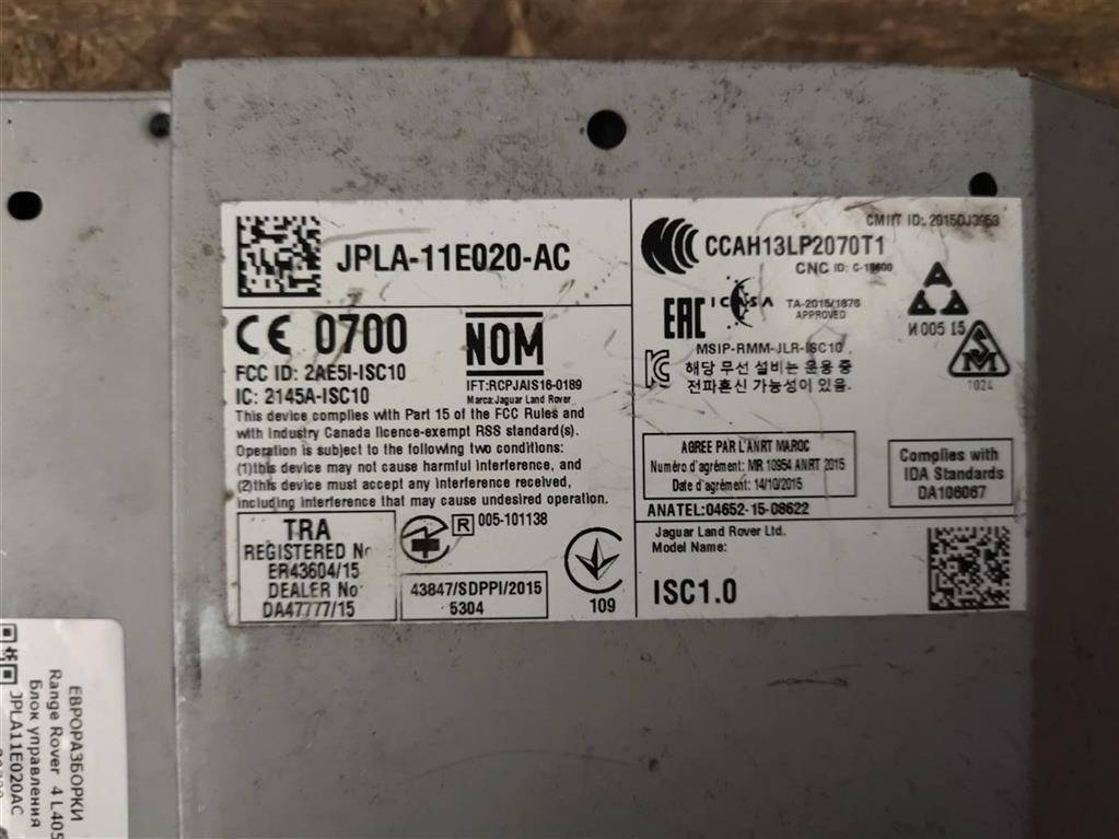 ![блок управления (другие) Land Rover Range Rover 4 поколение [рестайлинг] L405 2018, 4.4 л., дизель, АКПП, полный привод, правый руль, JPLA11E020AC, JPLA11E020AC, LR110986, LR110992 - фото №4](https://api.filesmonster.ru/gallery/c/3165/f264c3782b415dcf794536c057cb8c1e/preview.jpg)