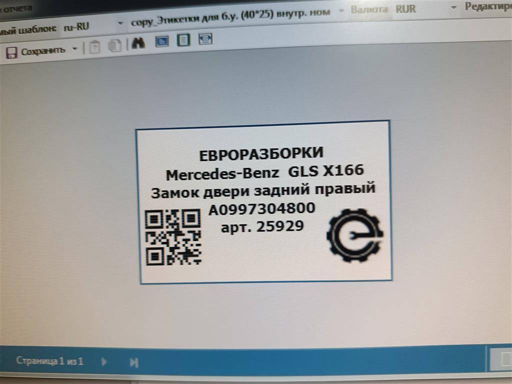 | Номер запчасти | A0997304800 |