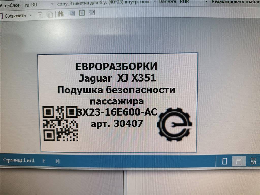 Подушка безопасности пассажира Jaguar XJ 4 X351 2010
